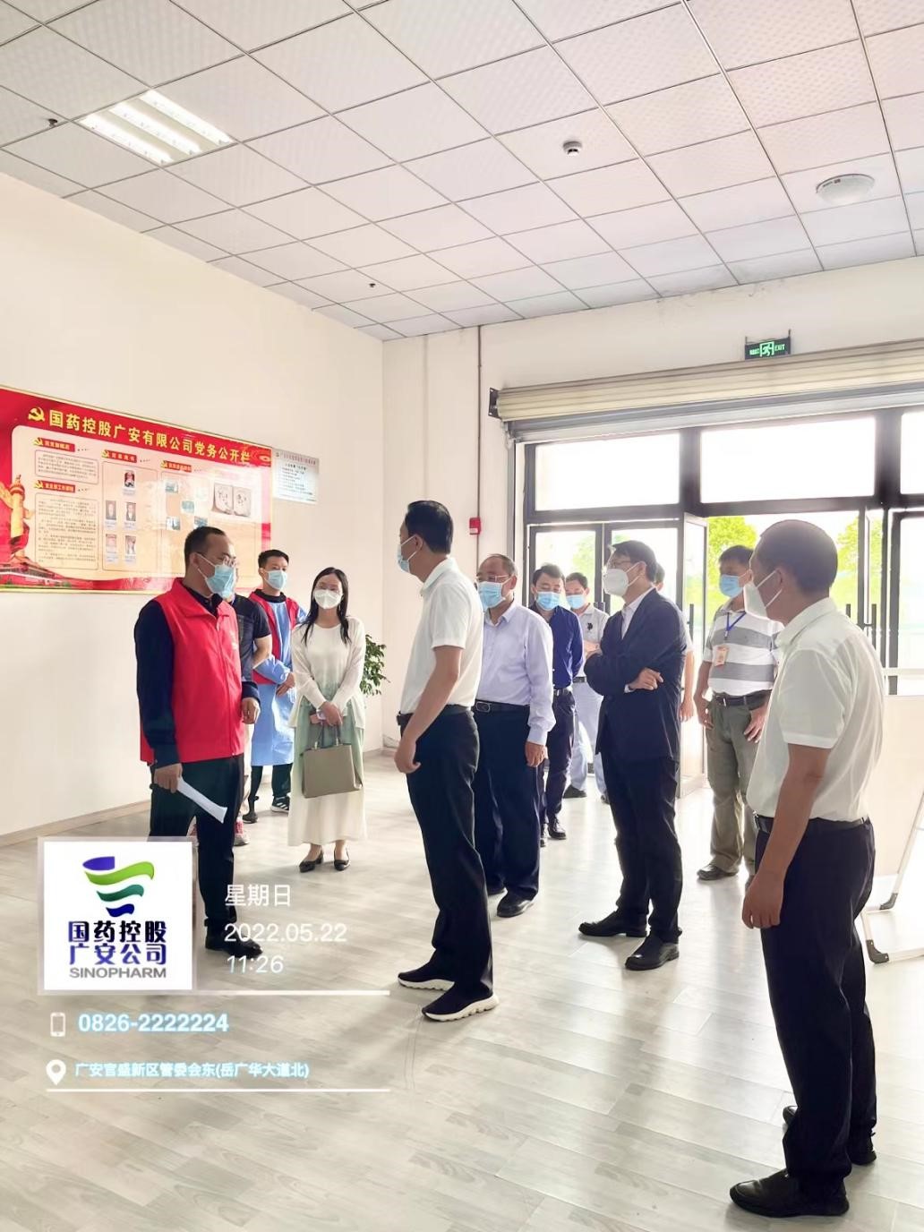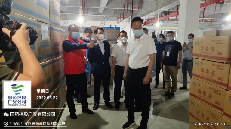 5月22日上午,广安市市委副书记、市长赵波前往国药集团国药控股广安有限公司就公司医用防护口罩、医用防护服、隔离衣等重点防疫物资储备情况开展指导检查工作。广安市委副书记甘用德,广安区区委副书记、区长刘永明,区委常委、副区长李常兵和市、区领导一行陪同检查。