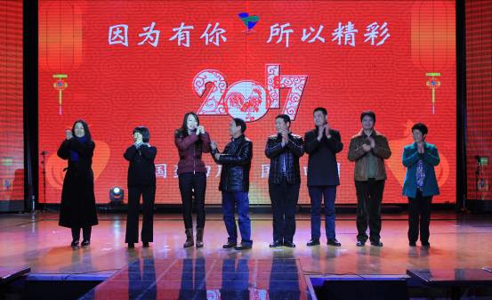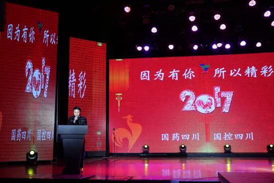 演出正式开始前,公司董事长何怡铭带领领导班子成员向全体职工拜年,并作新年致辞。他说,刚刚过去的2016年,是公司融入国药控股的第三年,一年来,公司上下紧紧围绕国药控股提出的“调结构、提质量、控风险”战略目标,坚持以习近平总书记系列讲话精神为指引,扎实深入开展“两学一做”学习教育。公司法人治理结构、董事会运作、人力资源改革等工作取得重大突破;2016年度预算指标、“两降一减”任务、扭亏目标和提质增效工作圆满完成;党建工作、党风廉洁建设和企业文化建设等工作取得较好成效。他表示,这些成绩的取得来之不易,凝聚着公司全体员工的辛劳和汗水。2017年,面对“两票制”、药品零加成等系列医改政策陆续出台,市场竞争日趋激烈,他要求,要及时对公司发展战略进行梳理,积极转变经营管理机制,加强人才队伍建设,确保完成公司高效益、高质量的发展目标。他希望全体员工要肩负新使命,踏上新征程,展现新作为,实现新跨越。