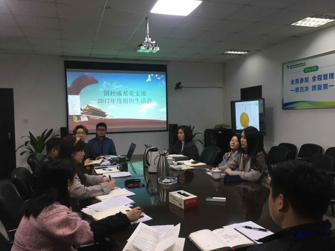 公司党委副书记、总经理袁芳到所联系的国控成都党支部参加民主评议工作