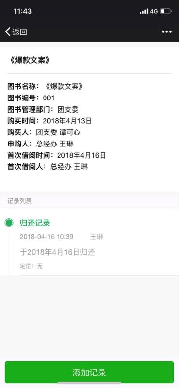 买回来的图书是公司的资产,不能据为己有,让书本停在某一个人手中就不动了,违背了我们做此次活动的初衷。怎样让书流转起来,让知识流动起来?黄生借书说,书非借不能读,要让员工们感到有时限阅读的紧迫感。我们采用了二维码对图书进行管理,要求每本书在每个人手上的停留时间不能超过1个月,通过扫描每本书的二维码,能记录借阅图书的时间、员工以及归还记录等,我们也能通过后台清晰的查看每本书在员工手上停留的时间,超过一个月的,团支委将对员工进行督促。